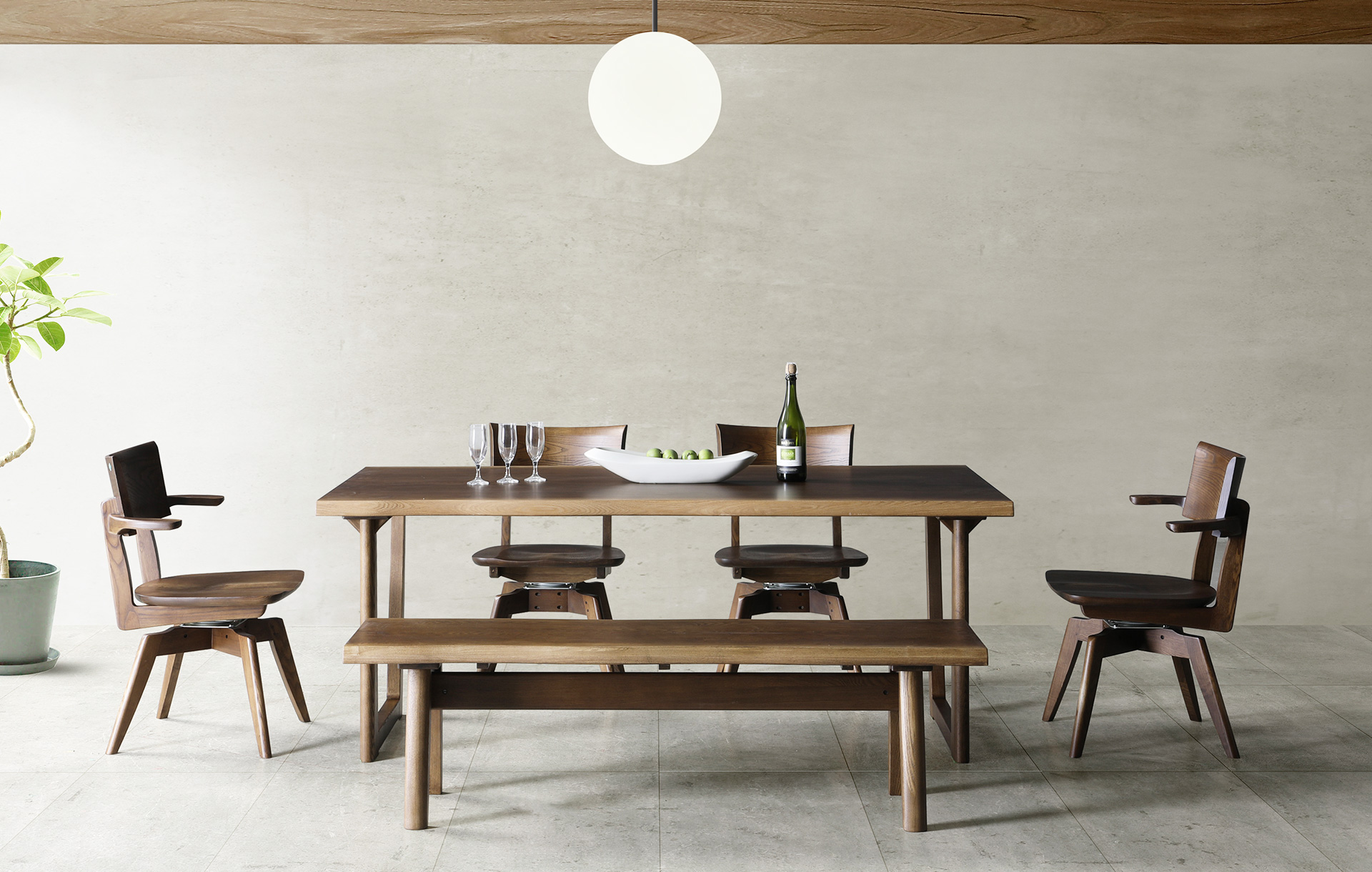 素材の良さと隙のないシンプルなデザインで落ち着いたダイニング空間を作り出します。