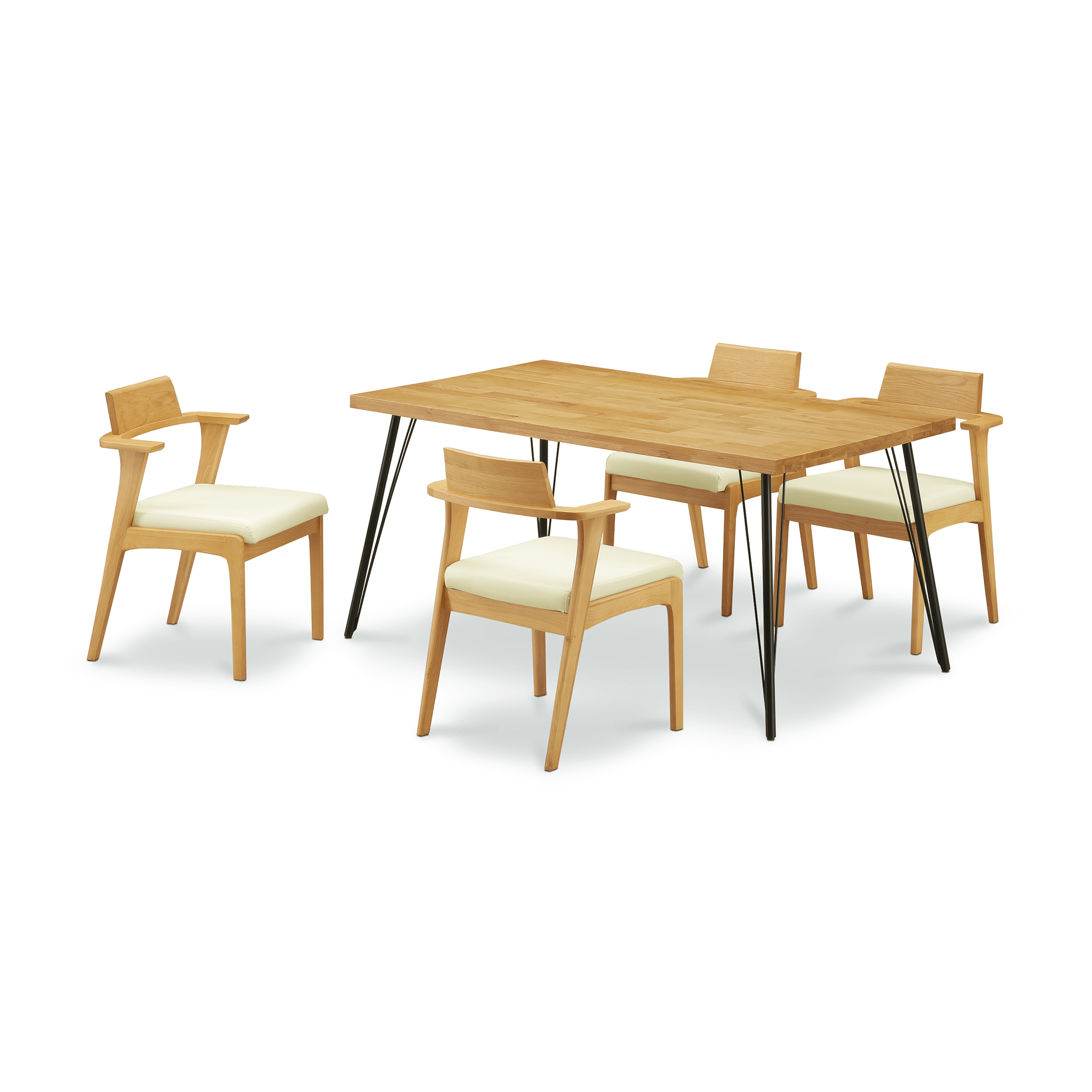 無垢材のぬくもりと鉄脚のシャープな美が調和するスタイリッシュダイニング